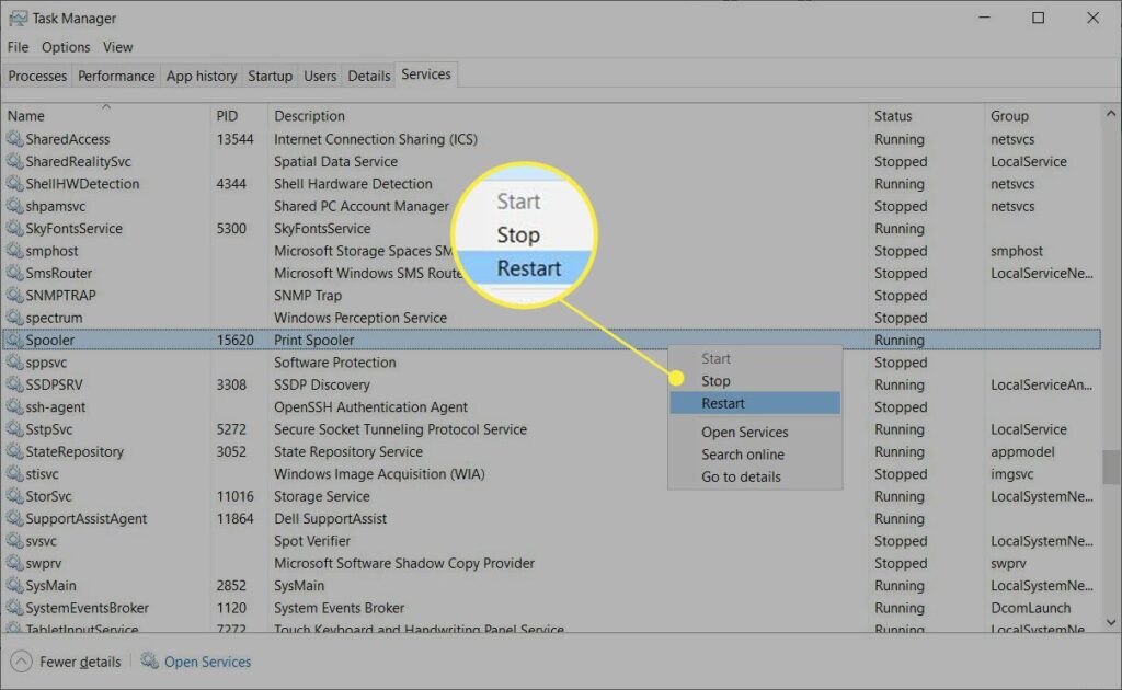 Press Windows key + R, type “services.msc” and hit Enter. Scroll down to find “Windows Image Acquisition (WIA).” Right-click it and select “Restart.” If it’s not running, click “Start” instead.